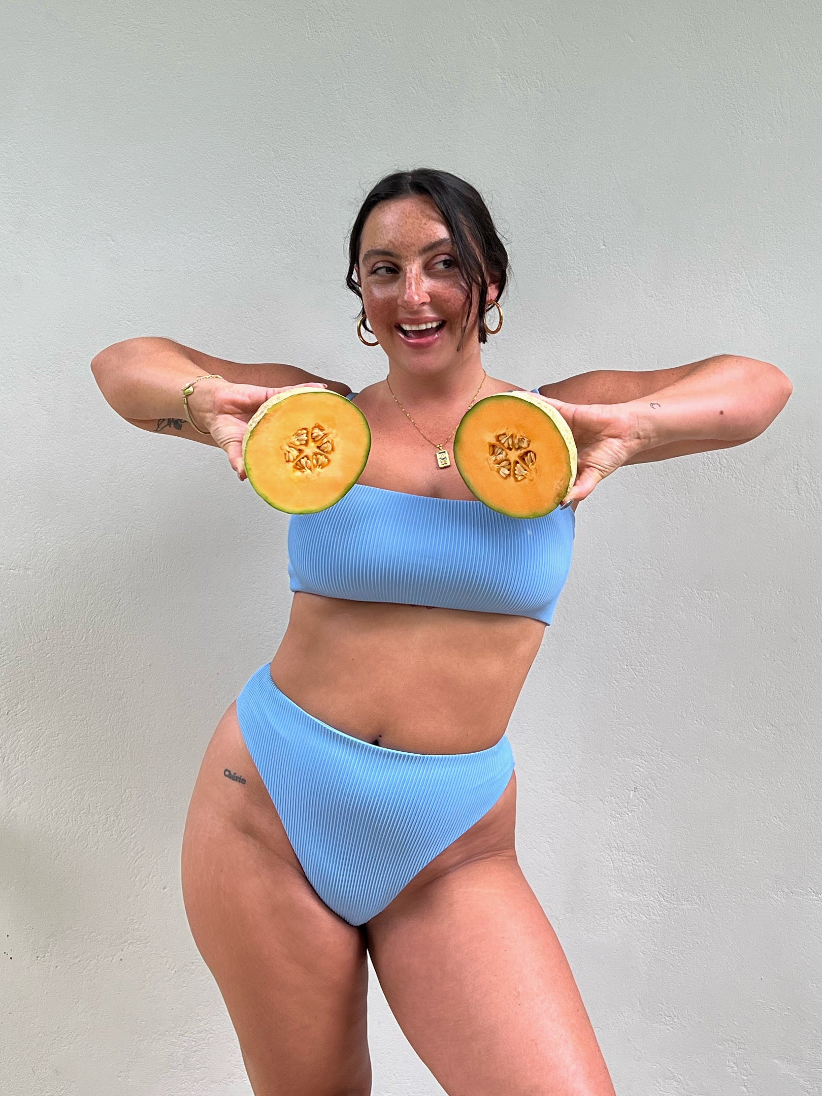Il est juste parfait! La coupe et la couleur sont magnifiques! Il couvre bien mon petit ventre et montre juste assez les fesses, pas trop donc juste assez sexy!